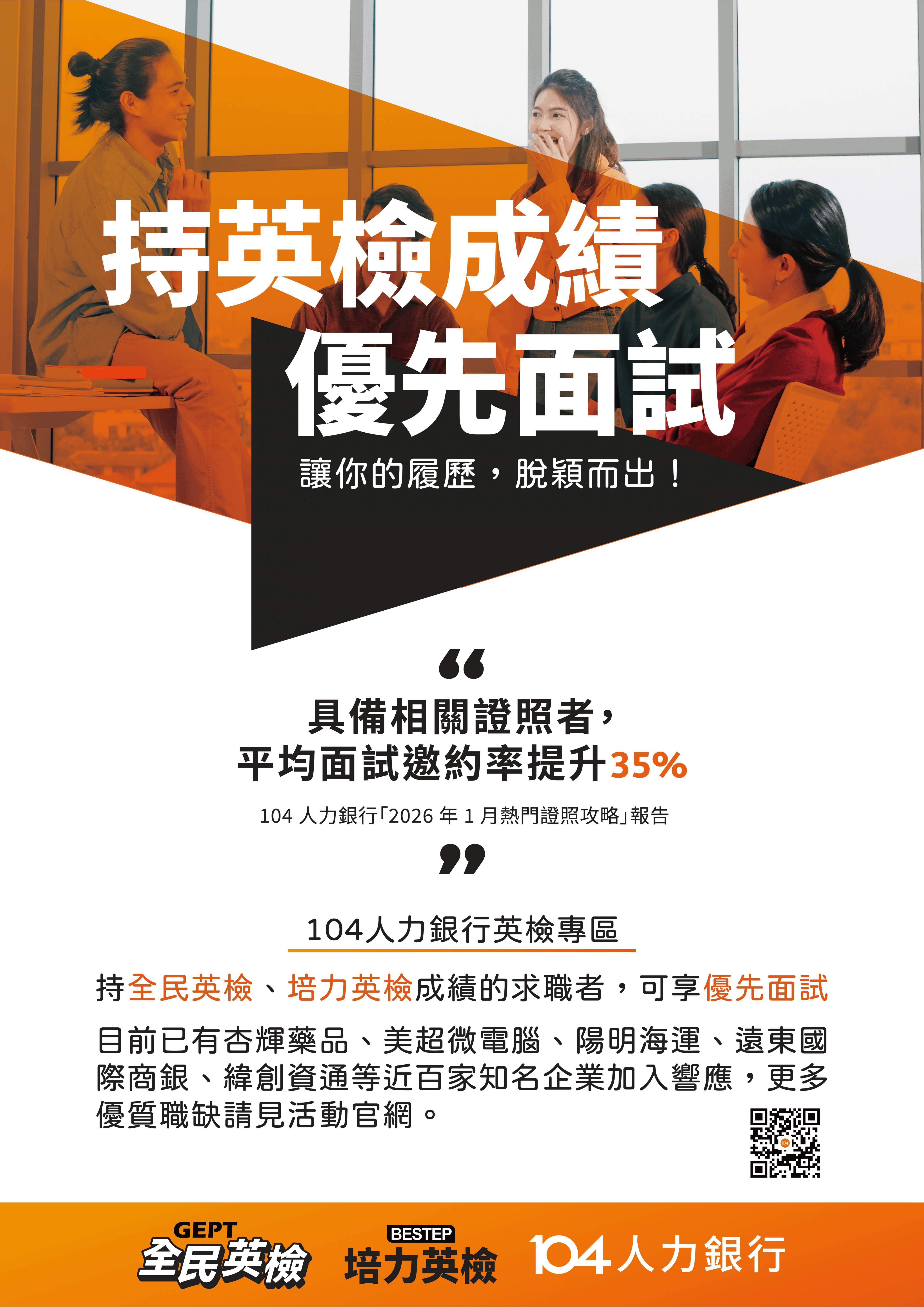 轉知 104人力銀行英檢專區